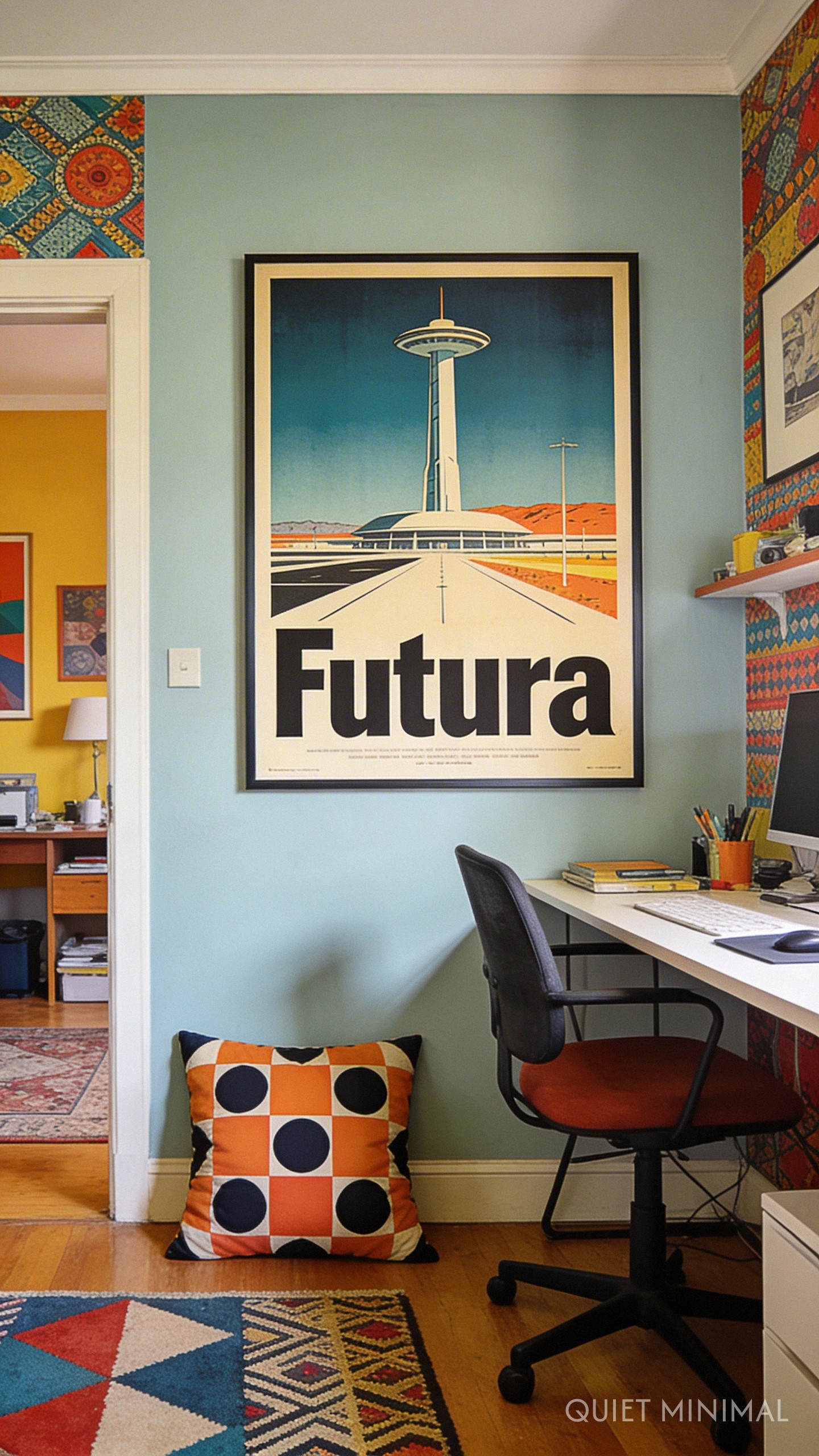A subtle but effective element of Wes Anderson’s world is the use of typography—specifically retro fonts like Futura. Bringing text into your decor adds a graphic, pop-art element that feels very curated.