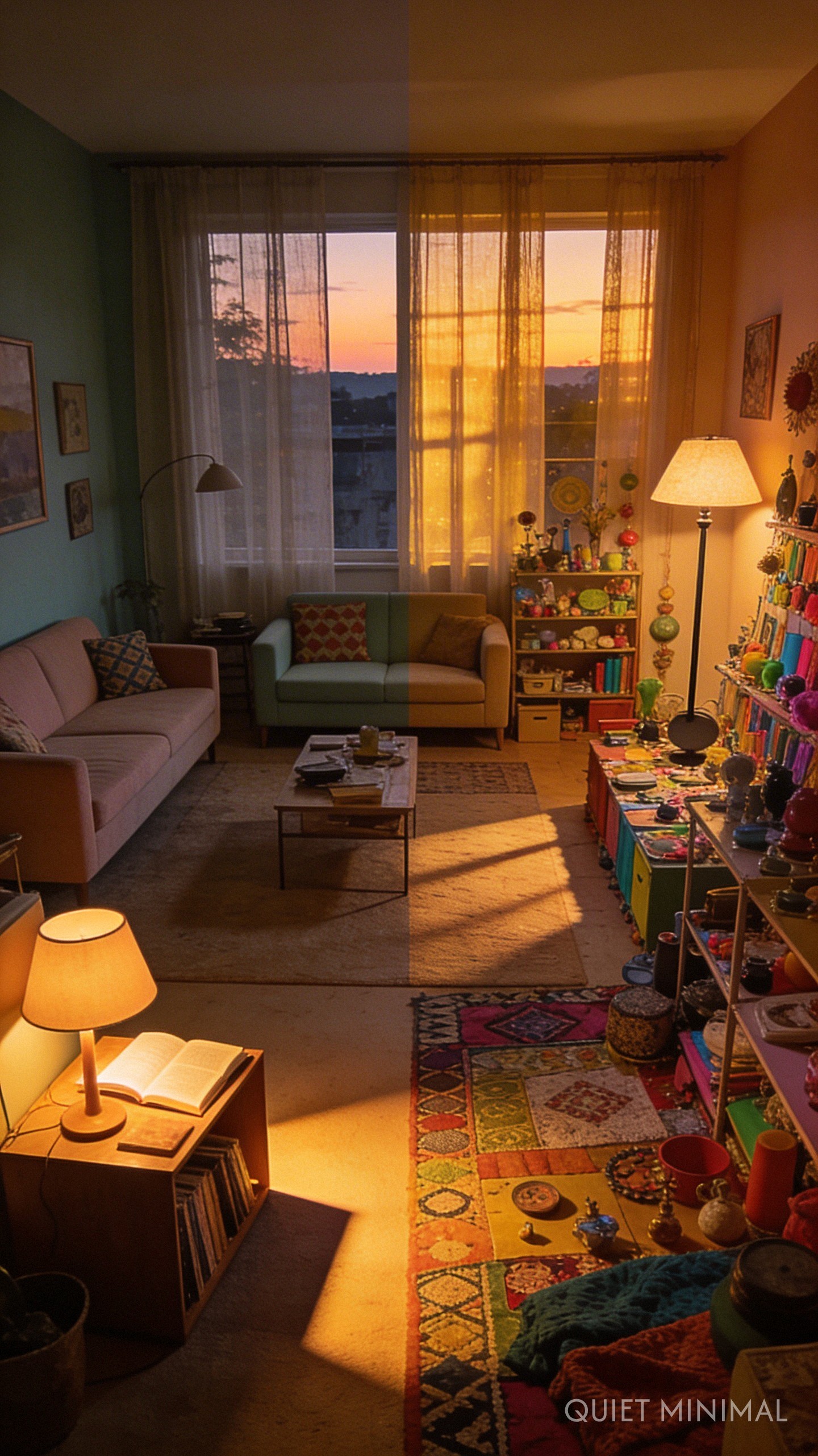 Key Takeaway: Use warm, layered lighting to highlight focal points and obscure less tidy corners.