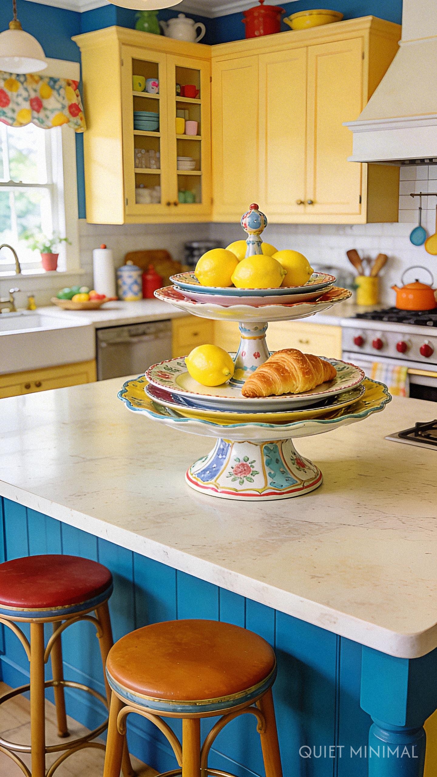 Create a stunning, custom centerpiece with a simple DIY project. You can assemble your own tiered stand using two or three plates of descending size and candle stick holders as separators, all secured with a strong epoxy. This becomes the perfect, versatile stage for displaying seasonal fruit, serving pastries when guests visit, or corralling everyday items like salt and pepper shakers on your kitchen island or table. It’s a functional piece of art you can proudly say you made yourself.