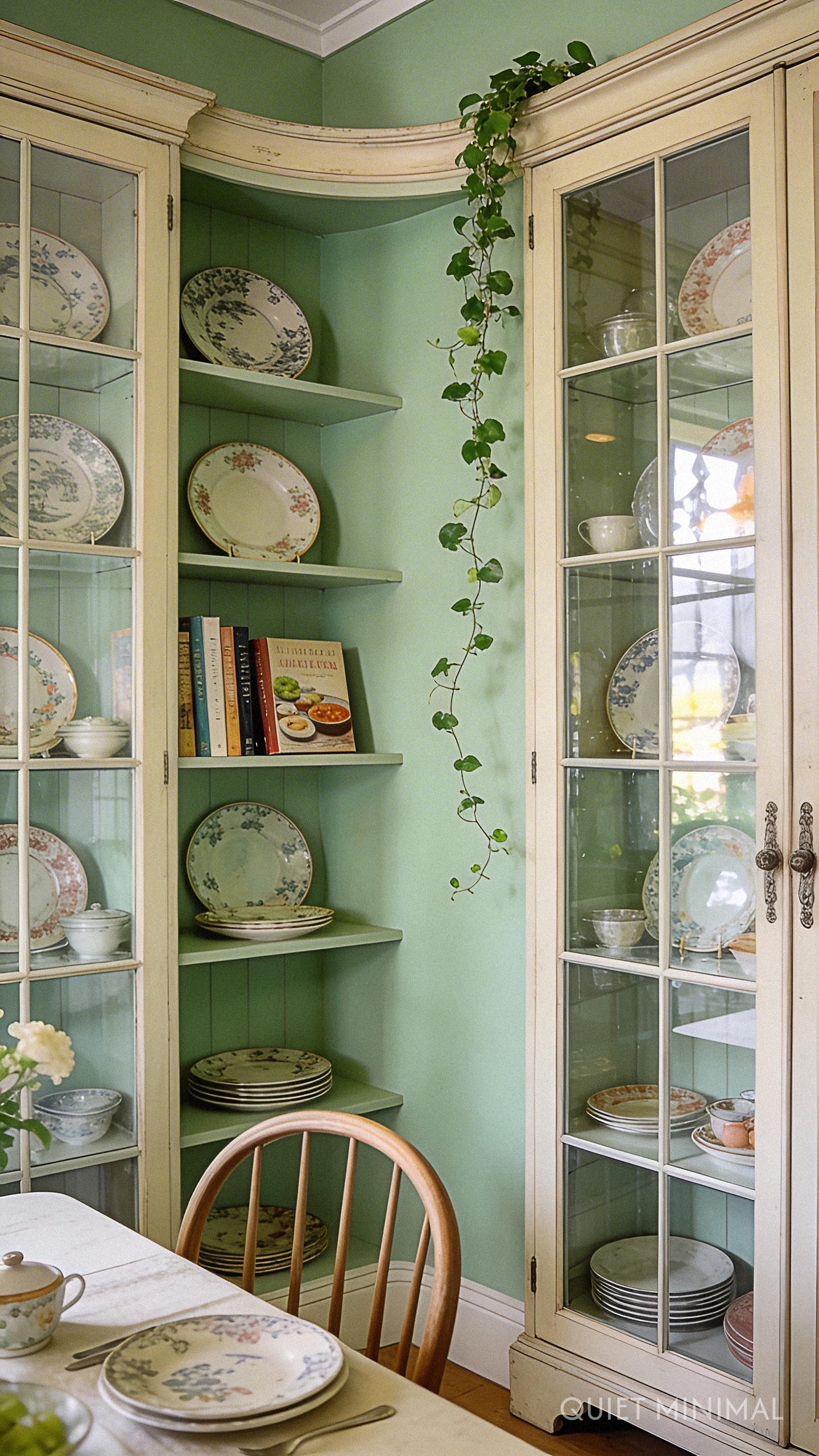 If you have a glass-front cabinet, treat it like a jewel box. Instead of packing the shelves tightly, give your pieces room to breathe. Mix in other textures and objects to tell a story—a few beloved cookbooks, a small brass object, or a trailing plant. Use small easels to prop up particularly beautiful plates. To create a truly whimsical effect, consider painting the inside of the cabinet a surprising, complementary color that makes your china patterns pop. This transforms a simple storage unit into an intentional, curated display.
