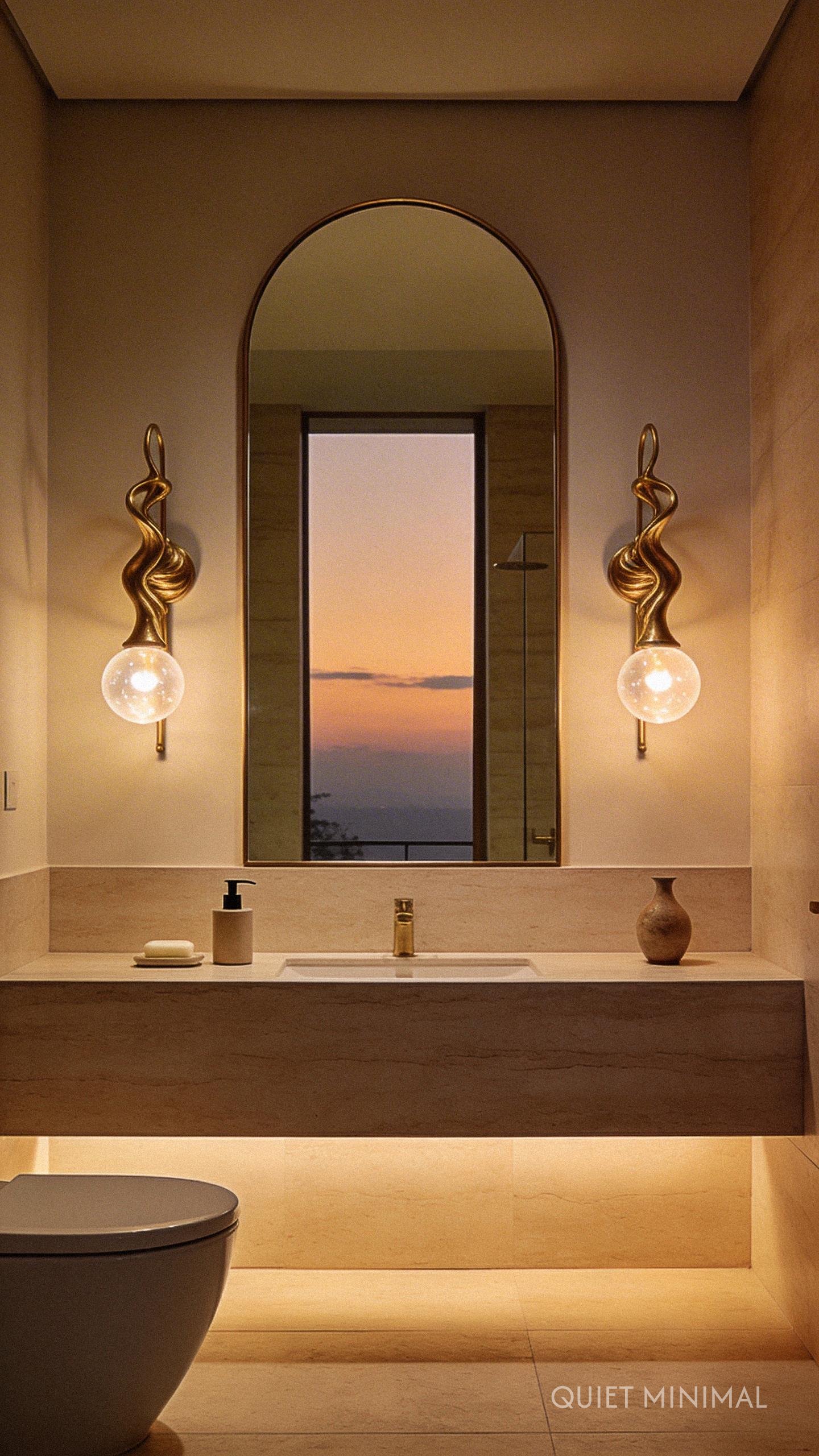 Builder-grade vanity lights are purely functional. Artistic lighting, however, is functional sculpture. Swapping out a generic light bar for a pair of elegant brass sconces or a small, dramatic pendant light elevates the entire room. Think of lighting as the jewelry of the space. It not only illuminates but also casts beautiful shadows, creates ambiance, and serves as a central art piece. This one change signals a high level of design intentionality and sophistication that guests will notice immediately.