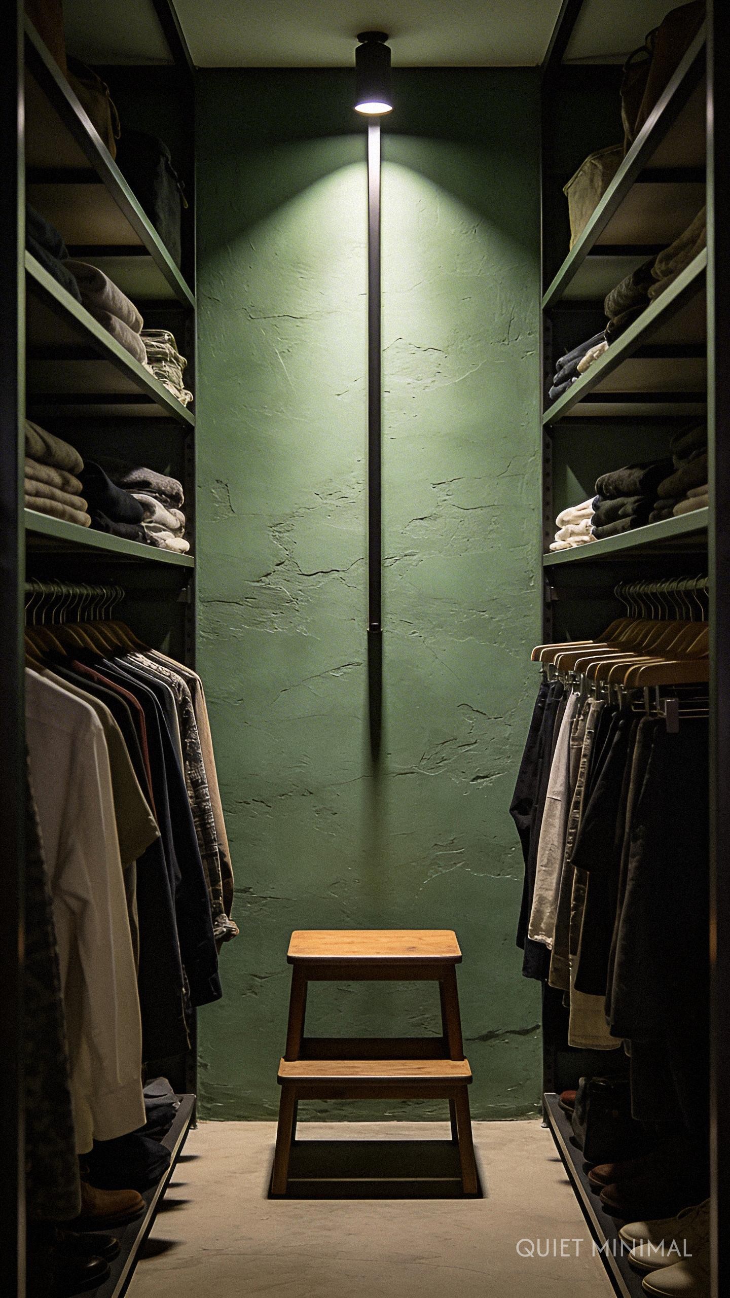 If you have a textured wallpaper or a specific paint color you love at the end of the closet, this lighting style will accentuate it. It shifts the focus from the tightness of the walls to the beauty of the design details, perfectly aligning with a “creative curator” mindset.