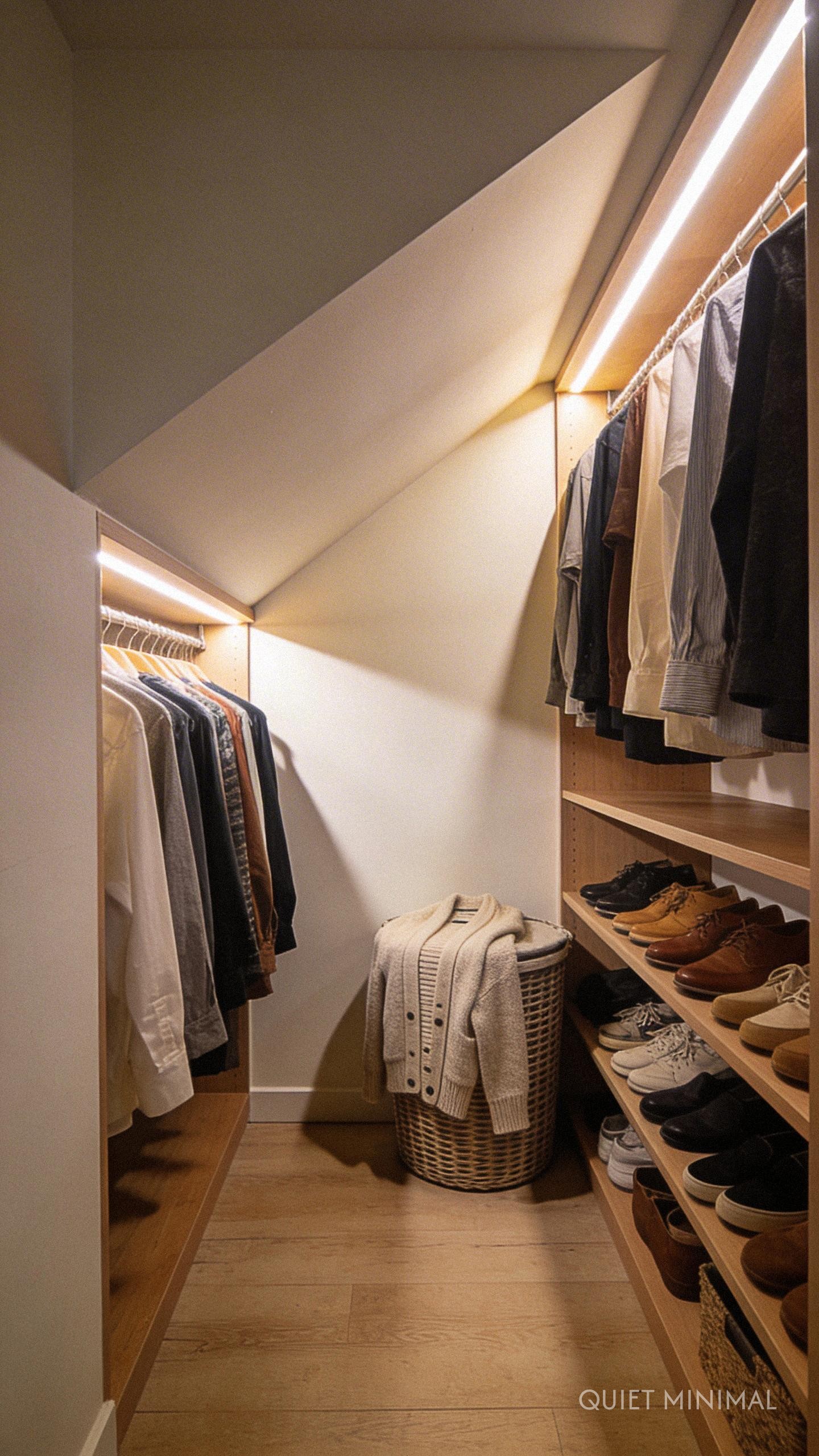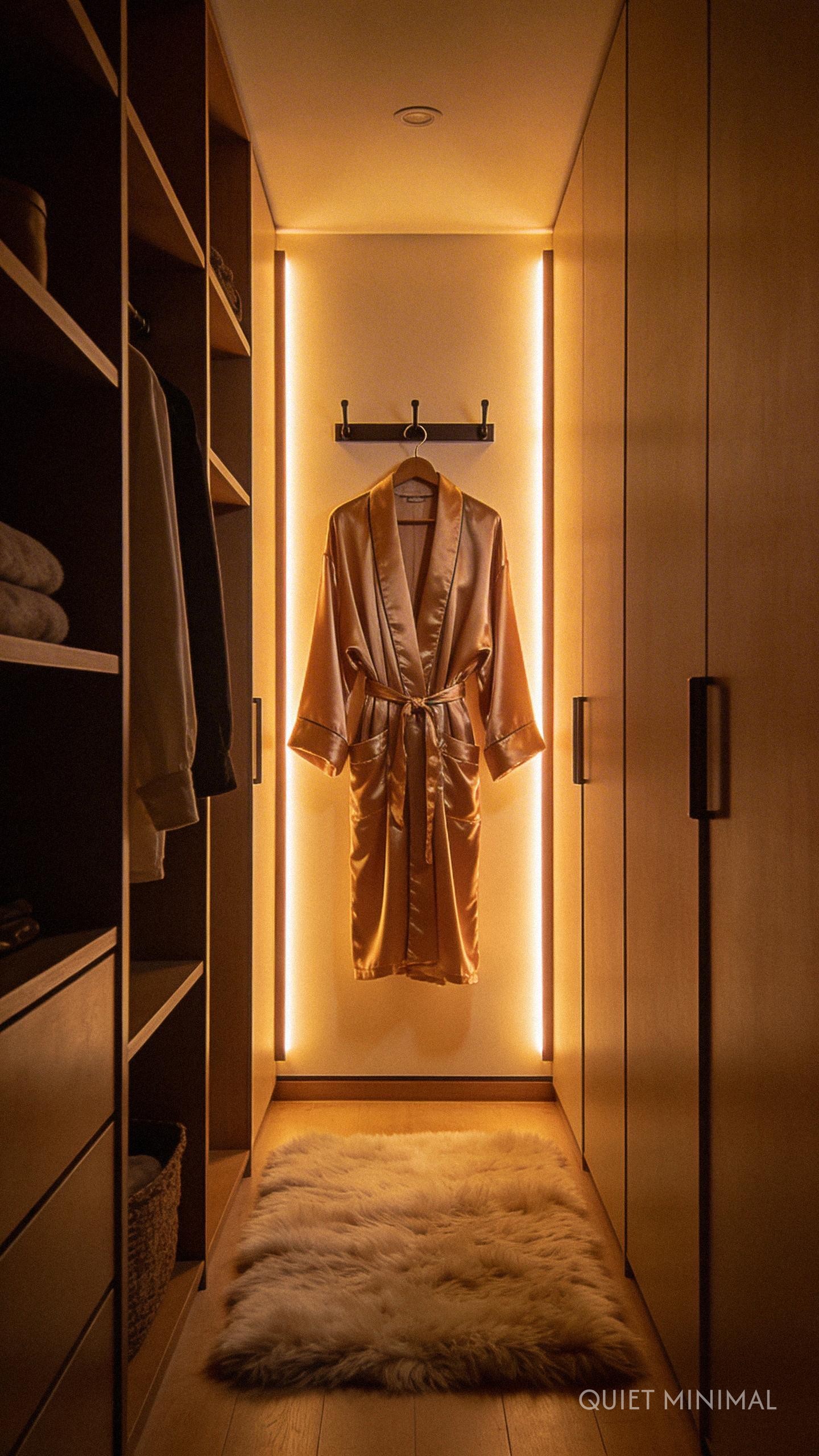 Key Takeaway: Install smart dimmers to transition your closet lighting from functional task lighting to a calming, ambient glow.