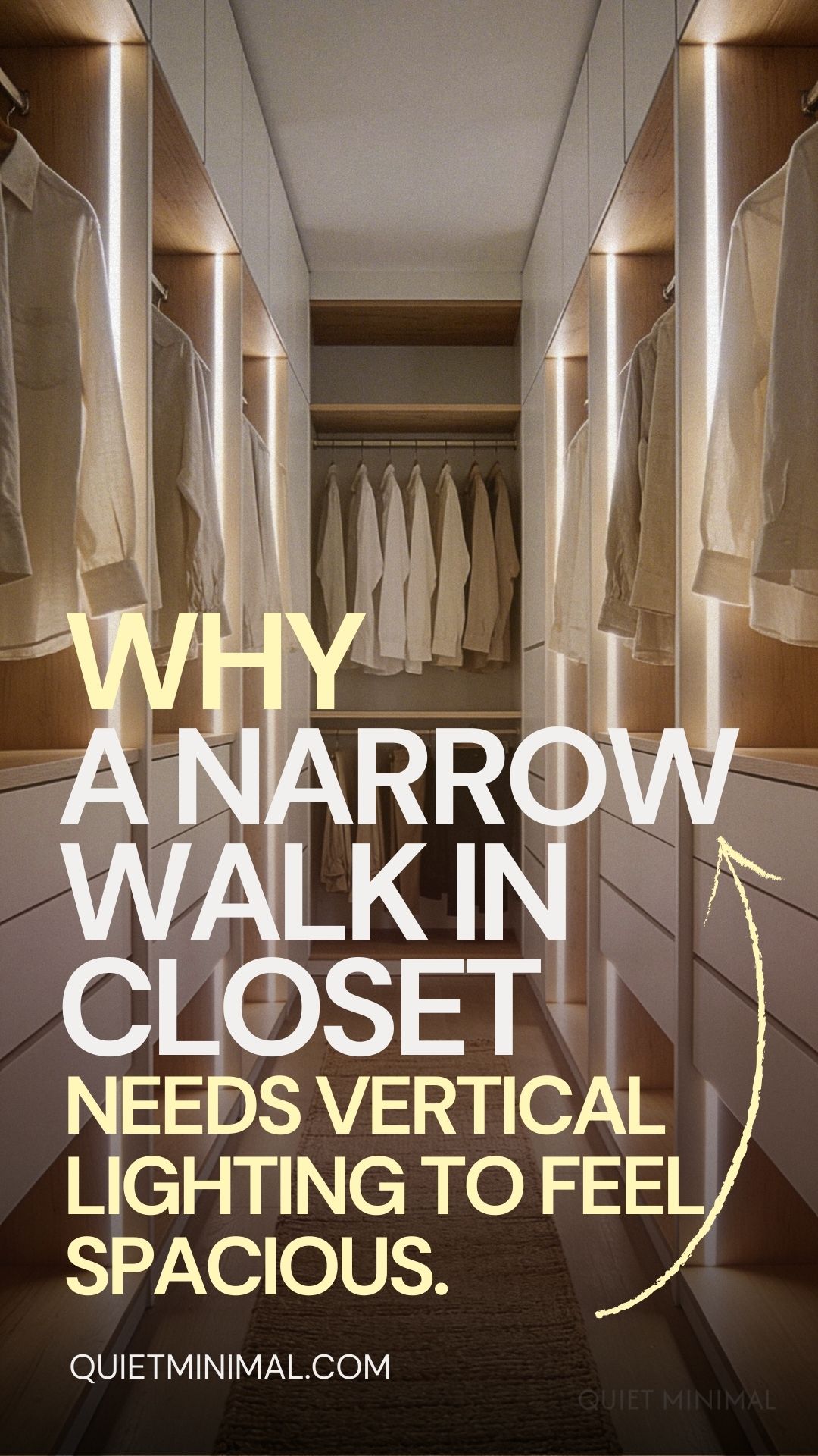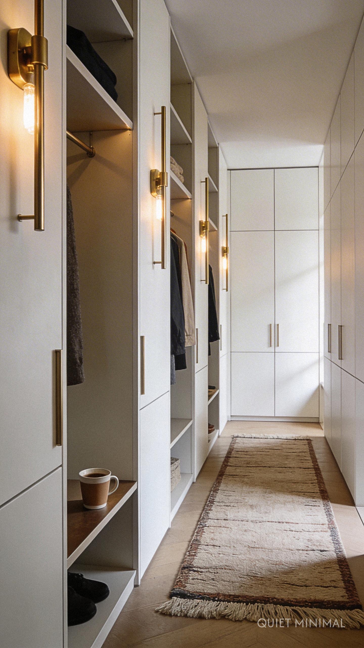 Key Takeaway: Slim vertical sconces add decorative character and warmth, elevating the closet from a storage space to a designed room.
