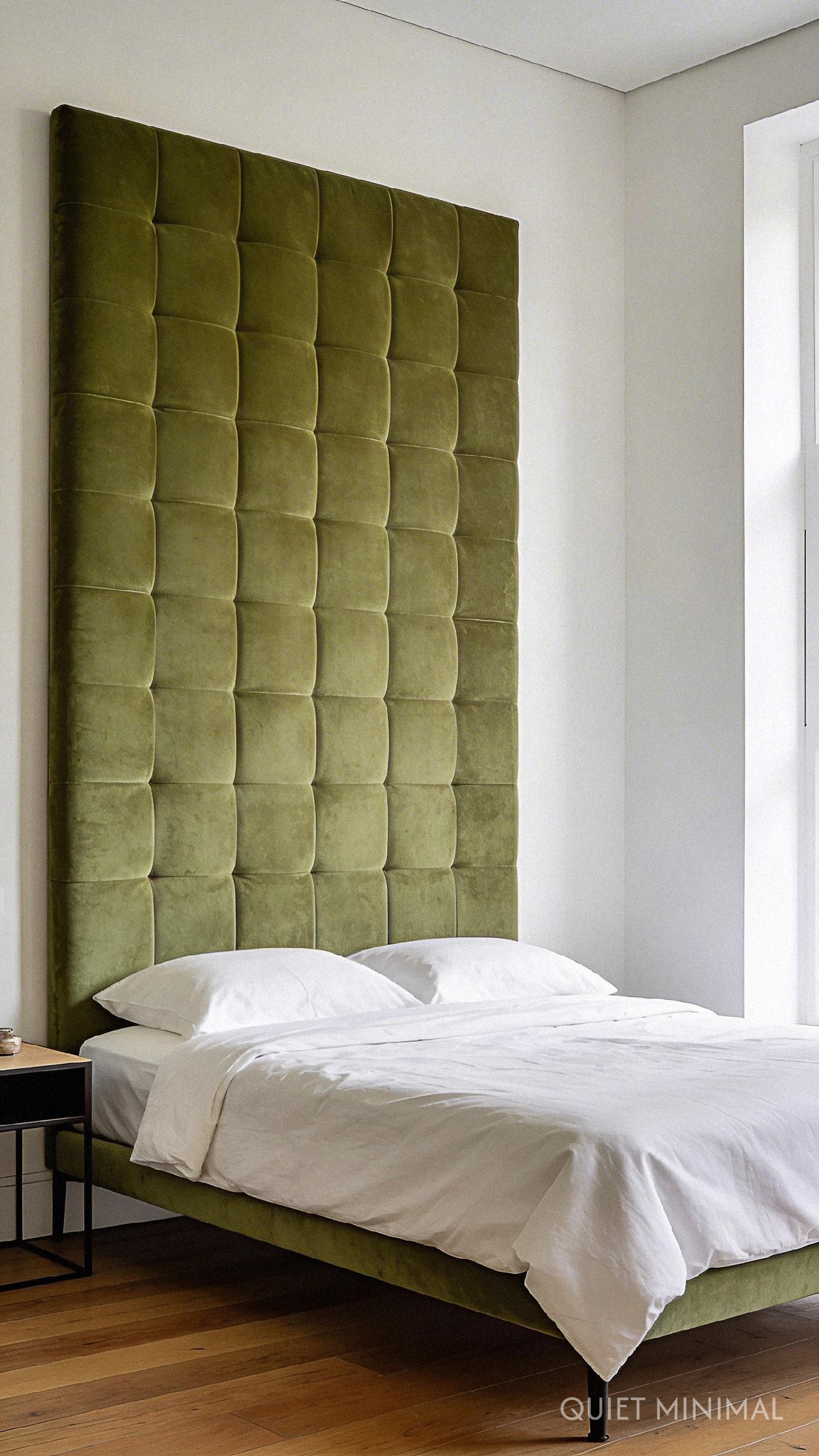 Key Takeaway: A DIY project like a sage green upholstered headboard adds a personal touch, provides soft comfort, and helps dampen sound for a quieter, more serene bedroom.