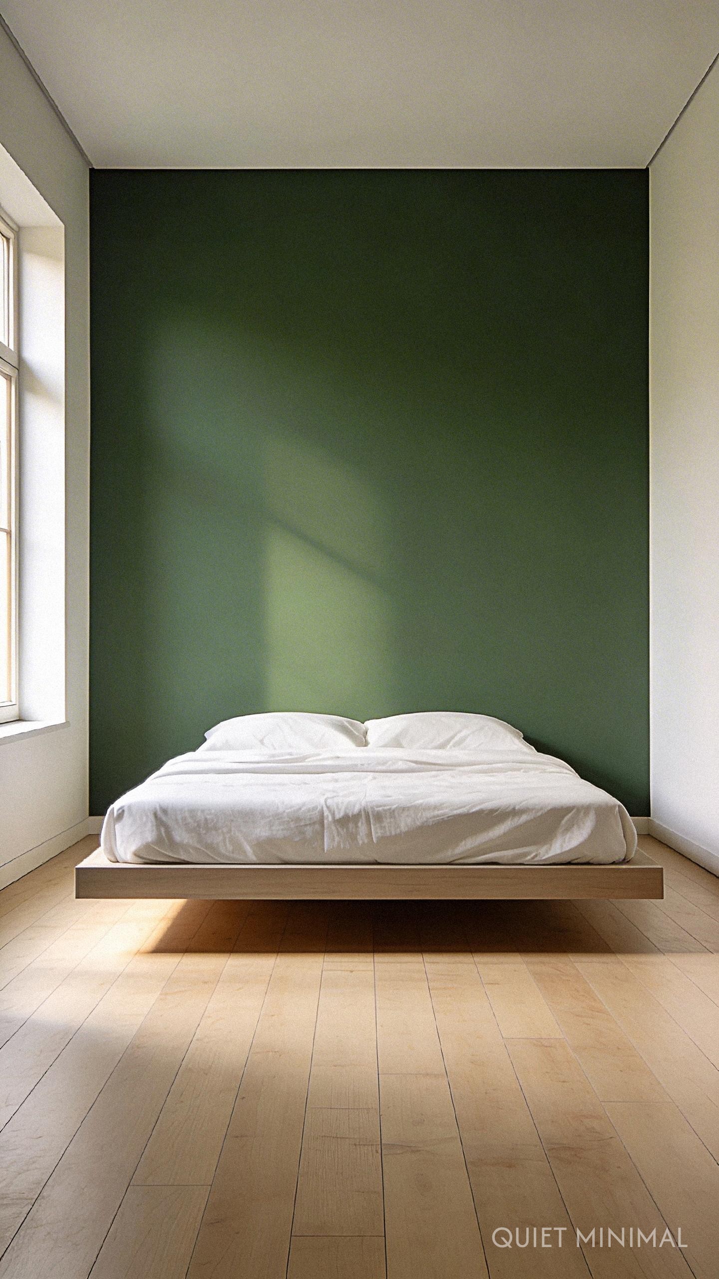Key Takeaway: Painting the wall behind your bed a solid sage green creates a focal point that minimizes mental clutter and promotes a feeling of calm security, making it easier to fall asleep.