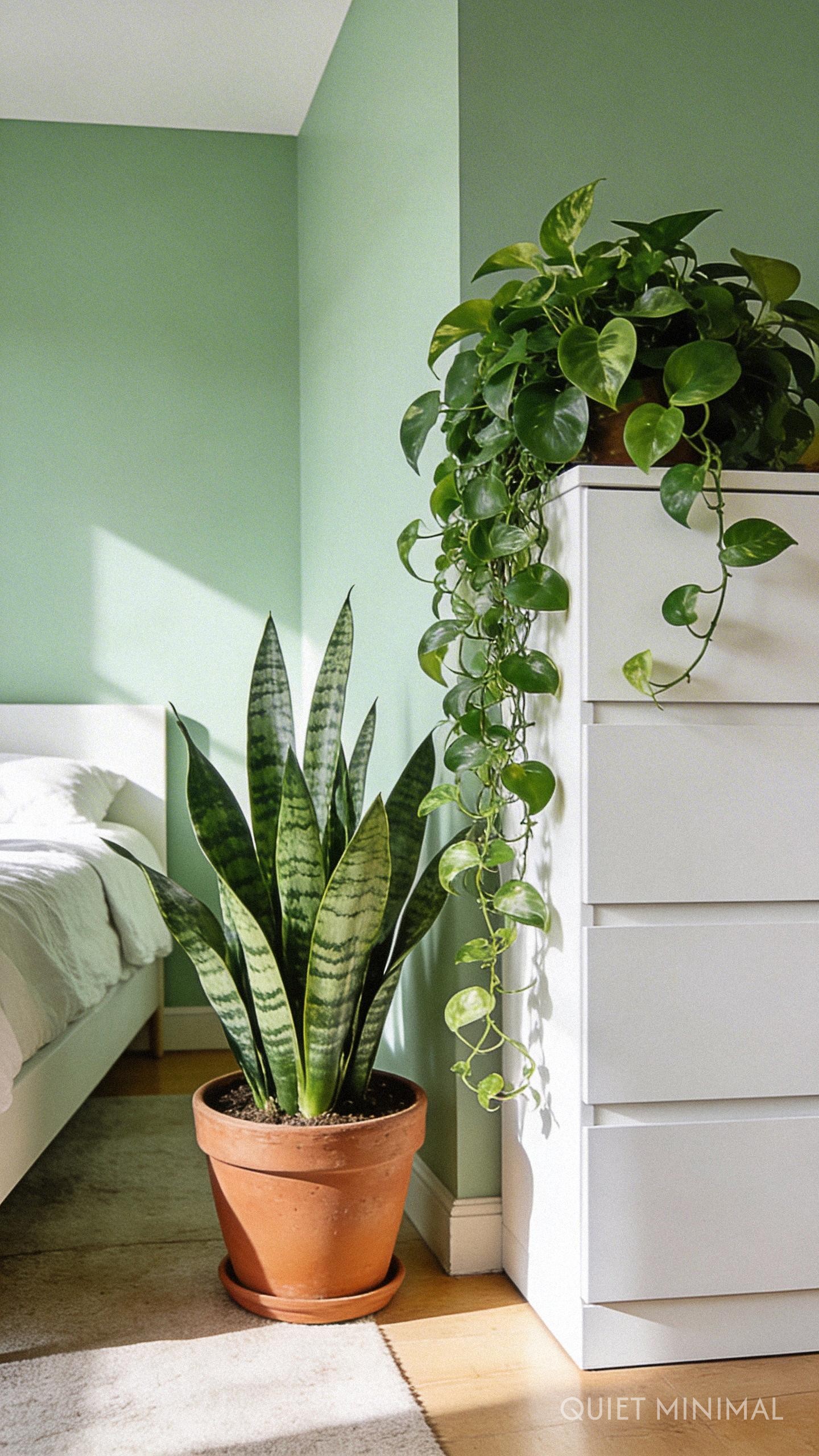 Key Takeaway: Pairing sage green walls or decor with low-maintenance houseplants enhances the room’s connection to nature, purifies the air, and reduces stress for a healthier sleep environment.