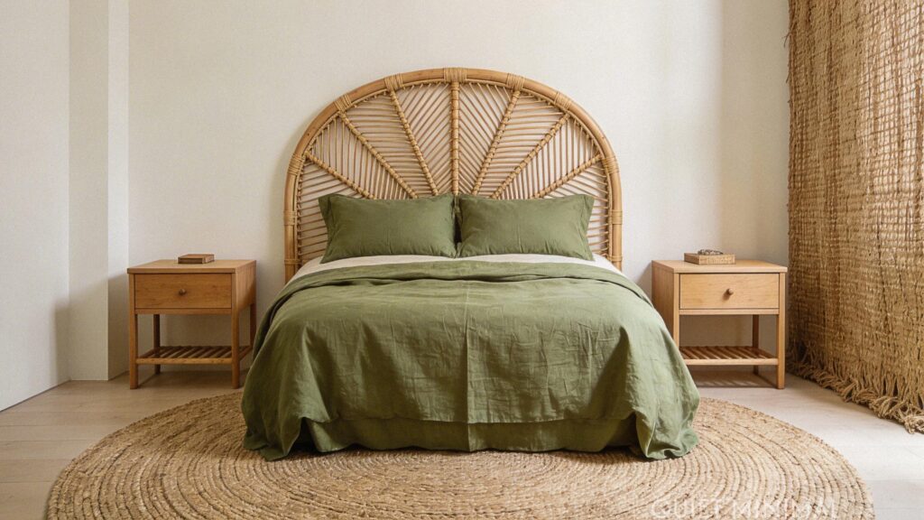 Key Takeaway: Combine sage green with natural wood, rattan, and warm whites to create a grounded, organic aesthetic that enhances the color’s inherent calming and sleep-inducing qualities.