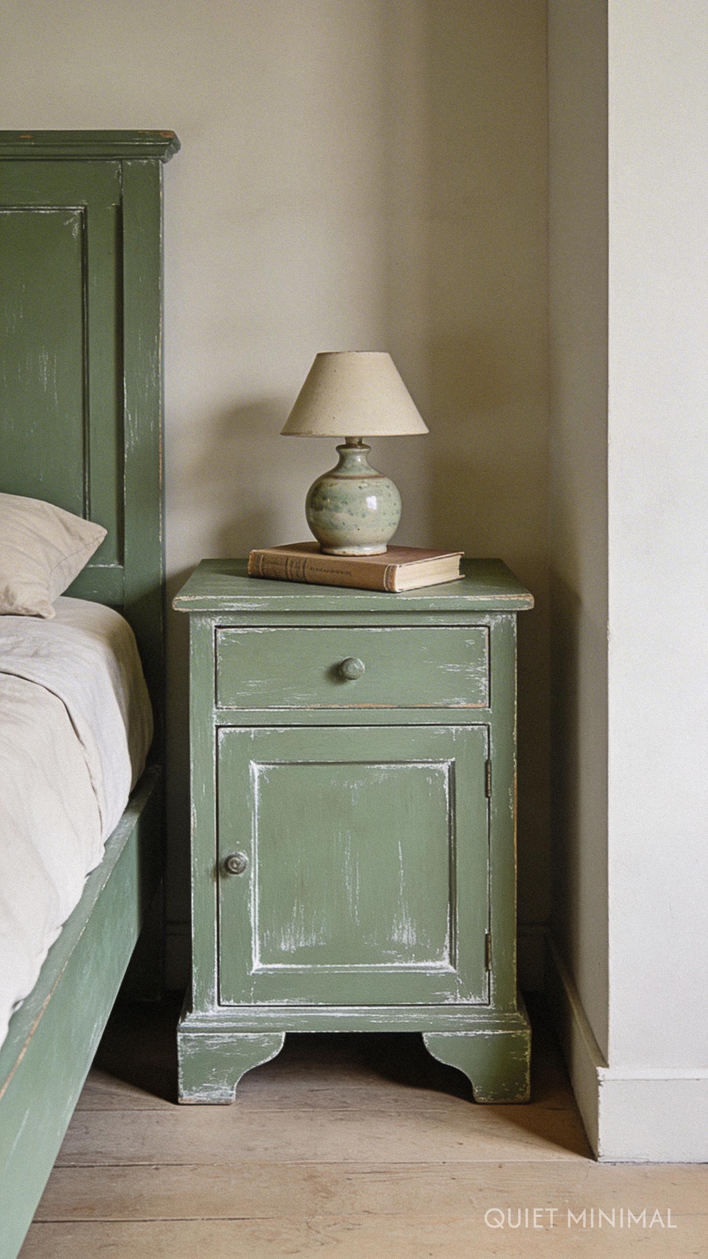 Give a tired wooden nightstand or a vintage dresser a new life and a new purpose. A weekend DIY project painting a piece of furniture with sage green chalk paint can completely transform your room’s energy. This approach allows you to introduce the calming color without committing to painting an entire wall. The refurbished piece becomes a gentle, grounding presence, holding your nighttime essentials in a wash of serene color.