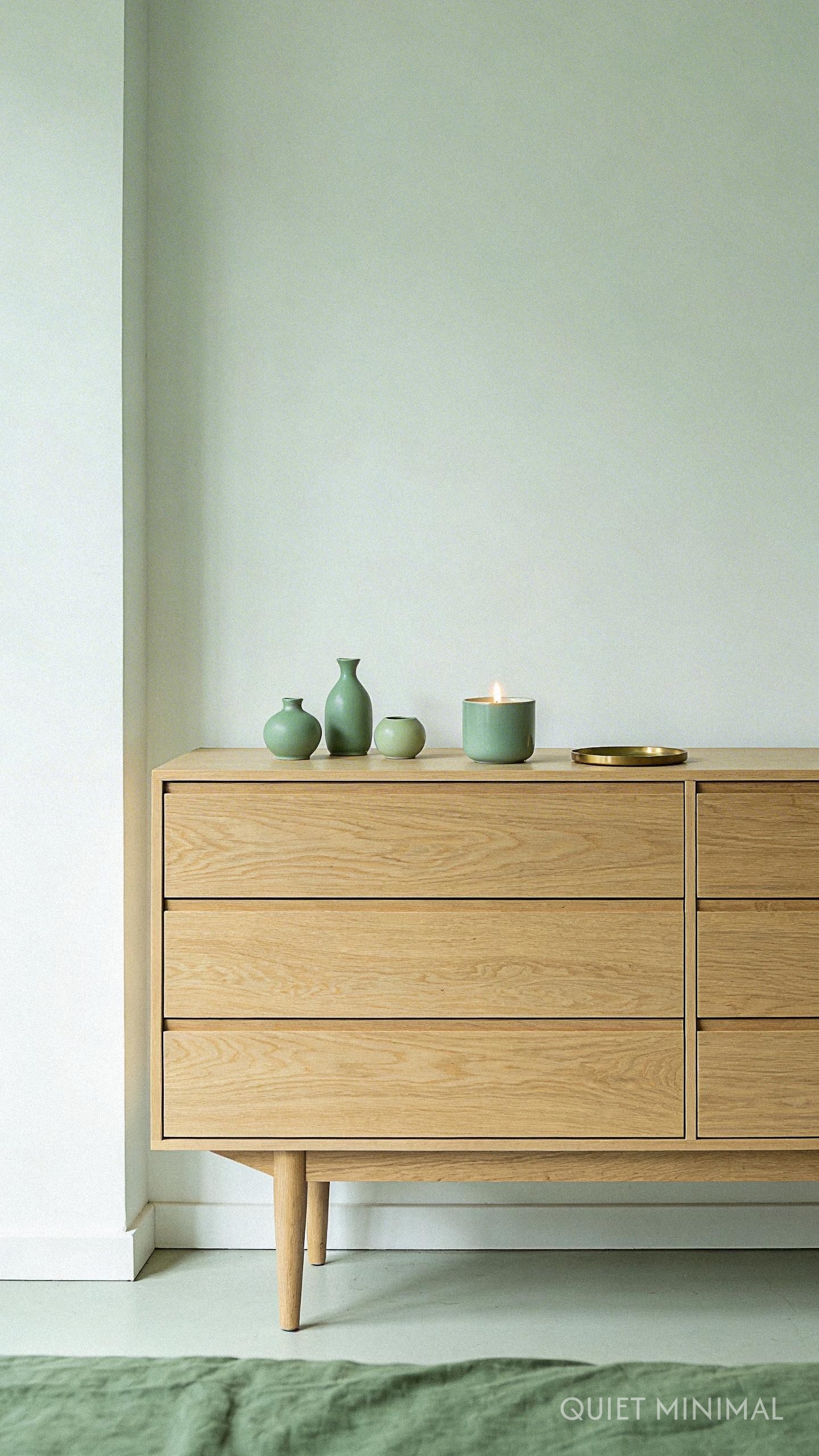 You don’t need a complete overhaul to feel the benefits. If you prefer a more minimalist aesthetic, introduce sage green through small, intentional decor pieces. Think a set of ceramic vases on your dresser, a tray for your skincare products, scented candles with a sage-and-lavender fragrance, or a single lumbar pillow on a neutral chair. These subtle pops of color are enough to bring the grounding energy of green into your sanctuary without overwhelming the space.